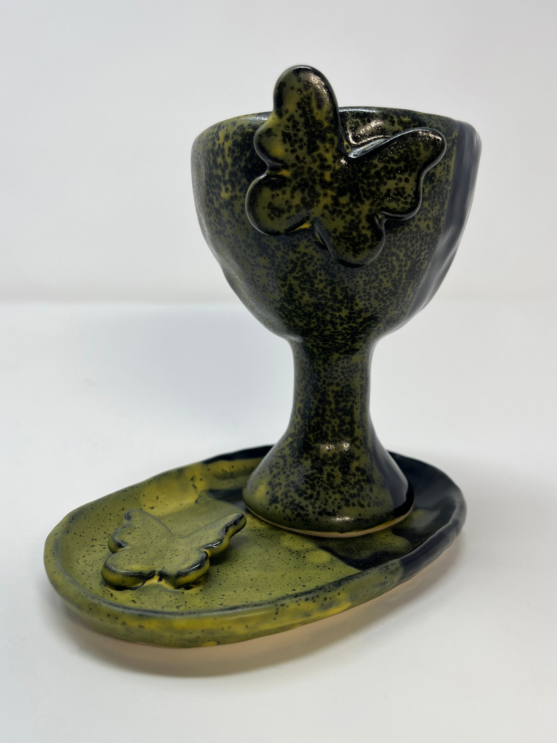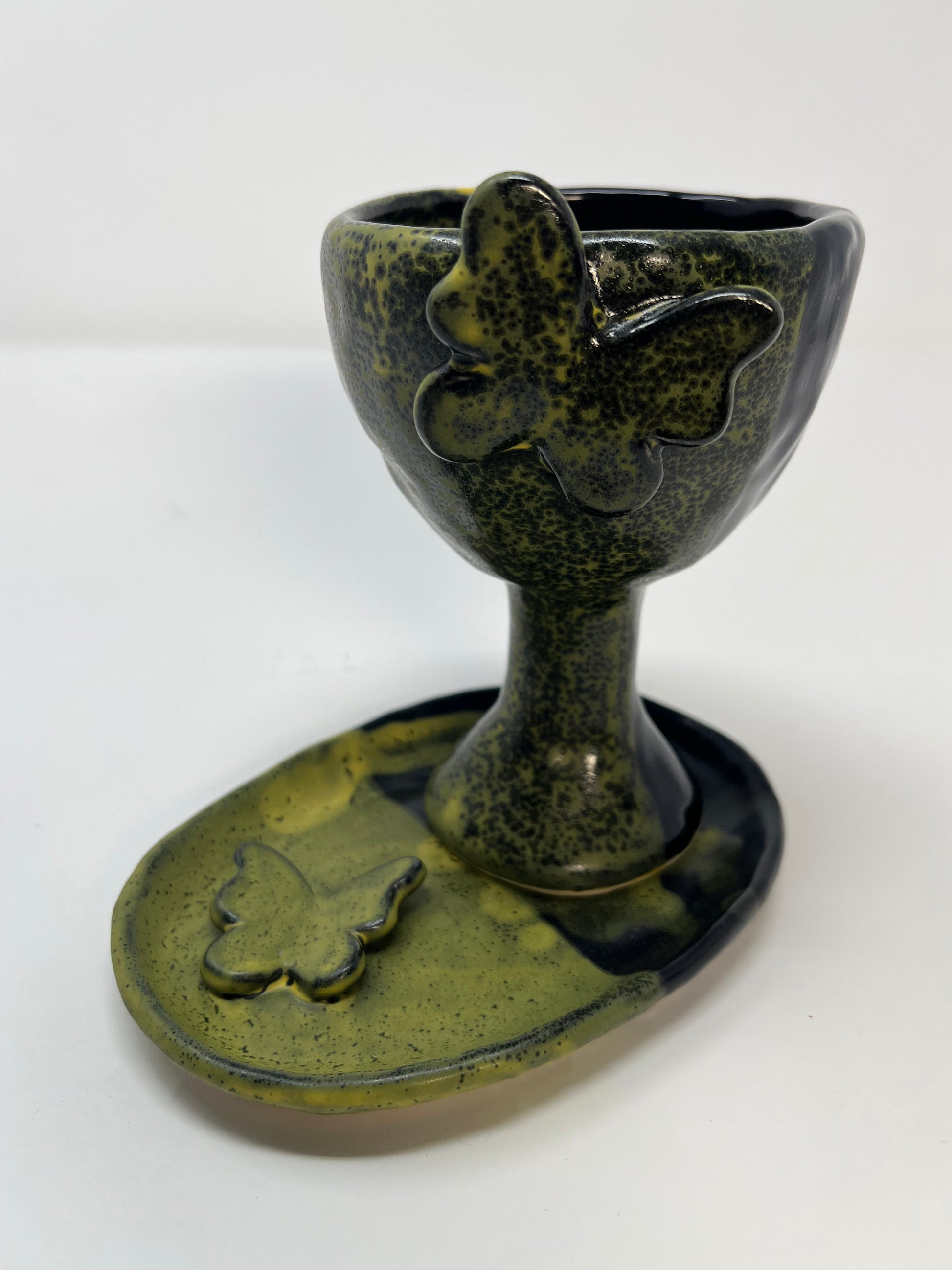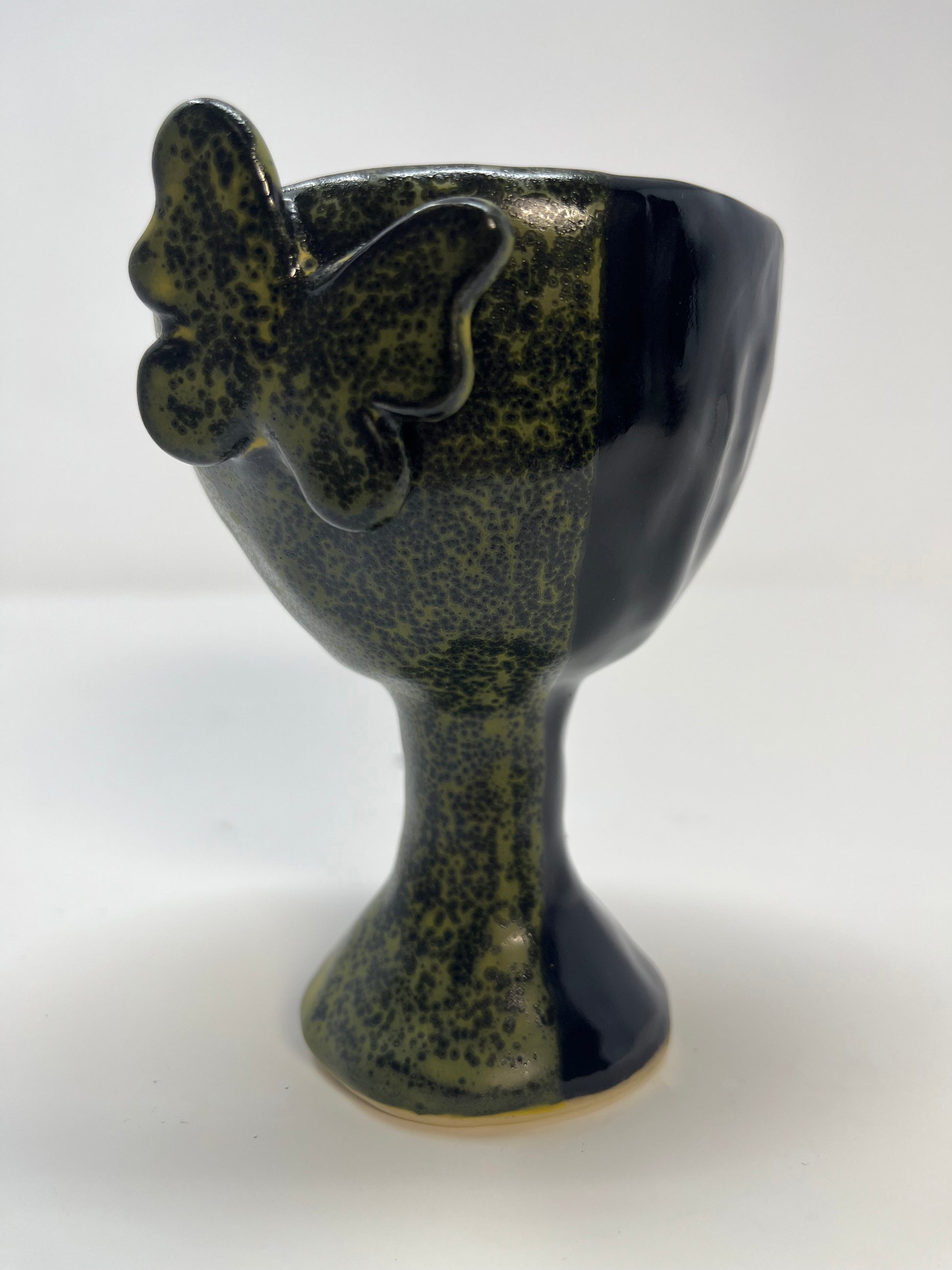 Hand built ceramic goblet with 3D butterfly detail. Food safe.