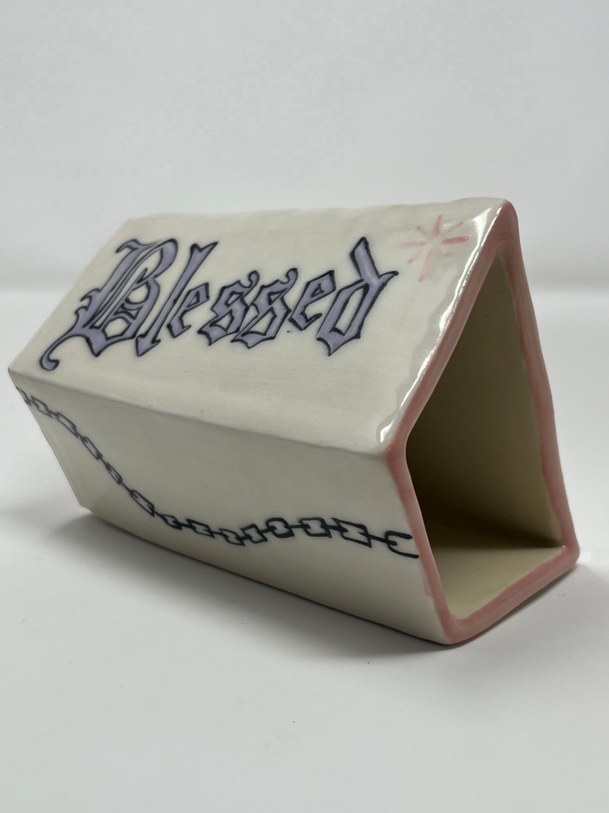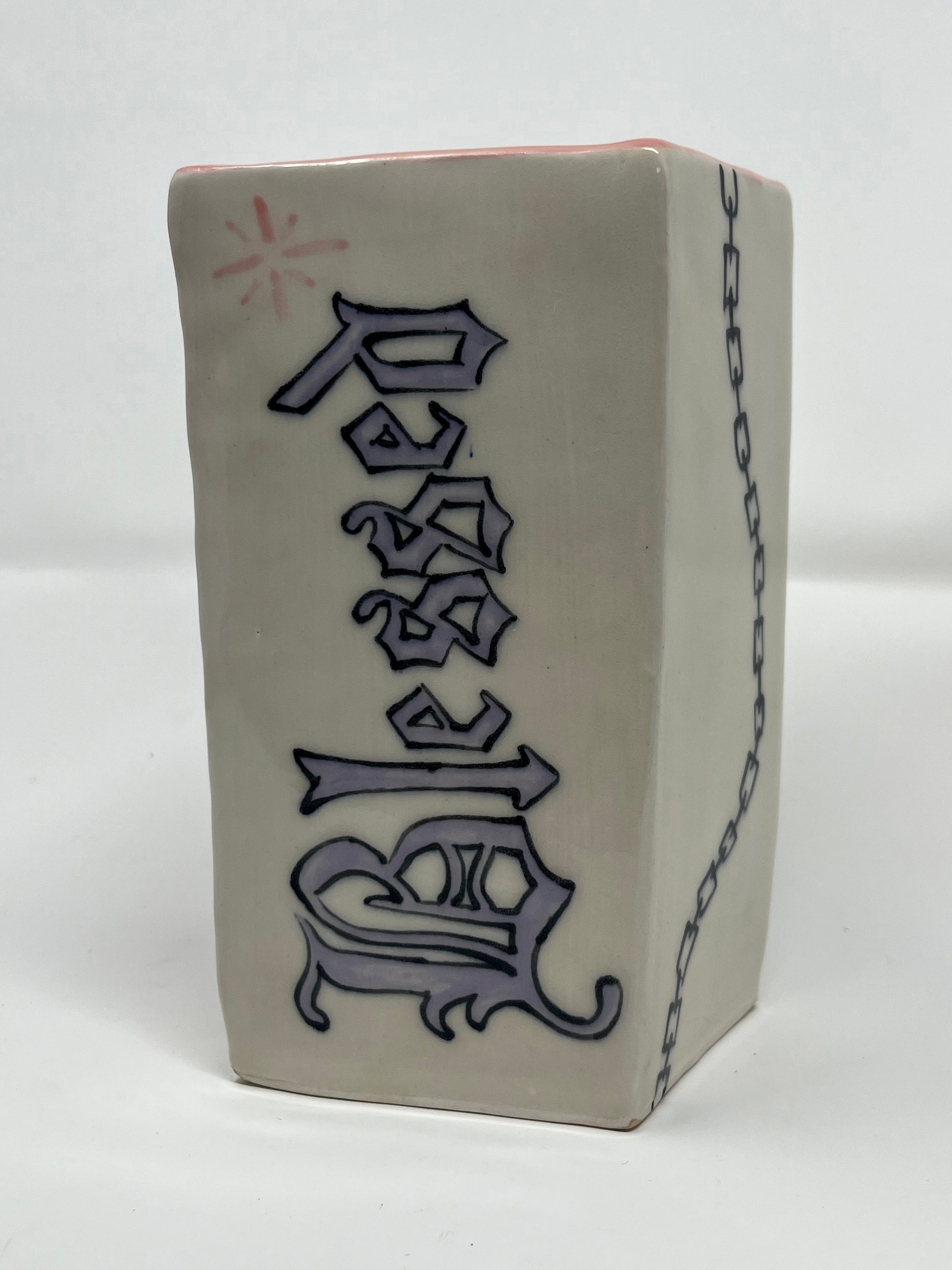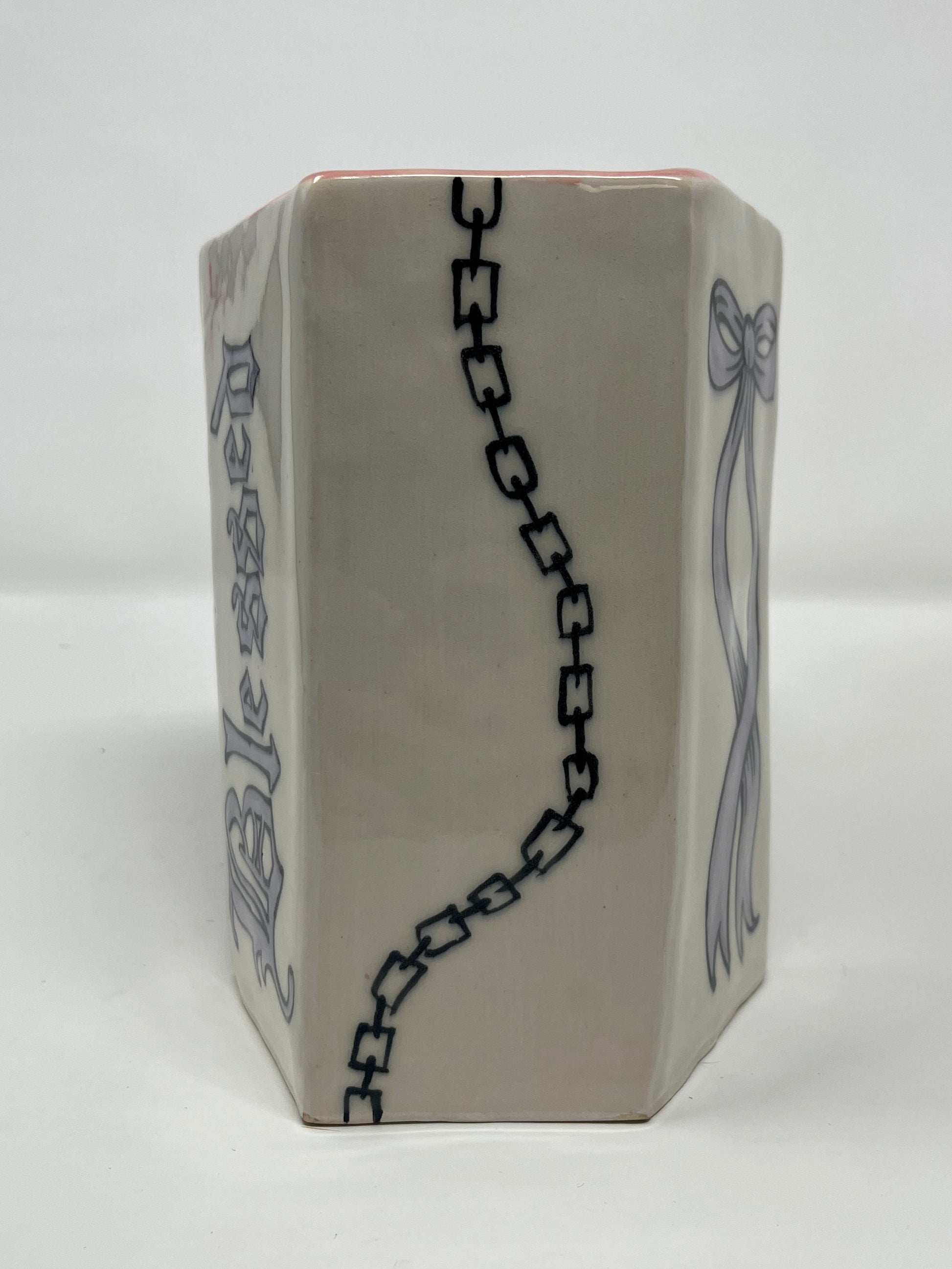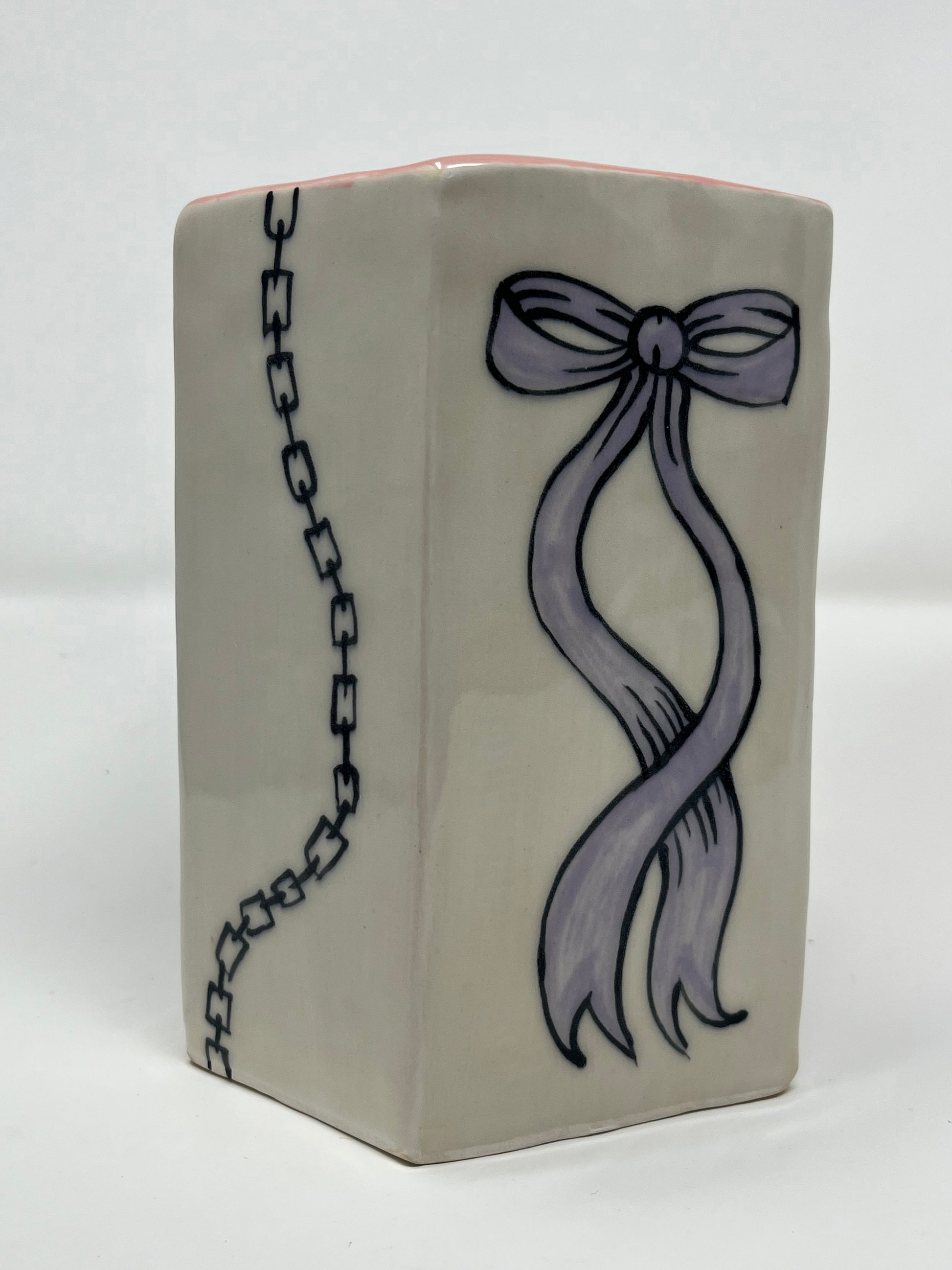 Hand built geometric ceramic vase with hand painted glaze design. Food safe.