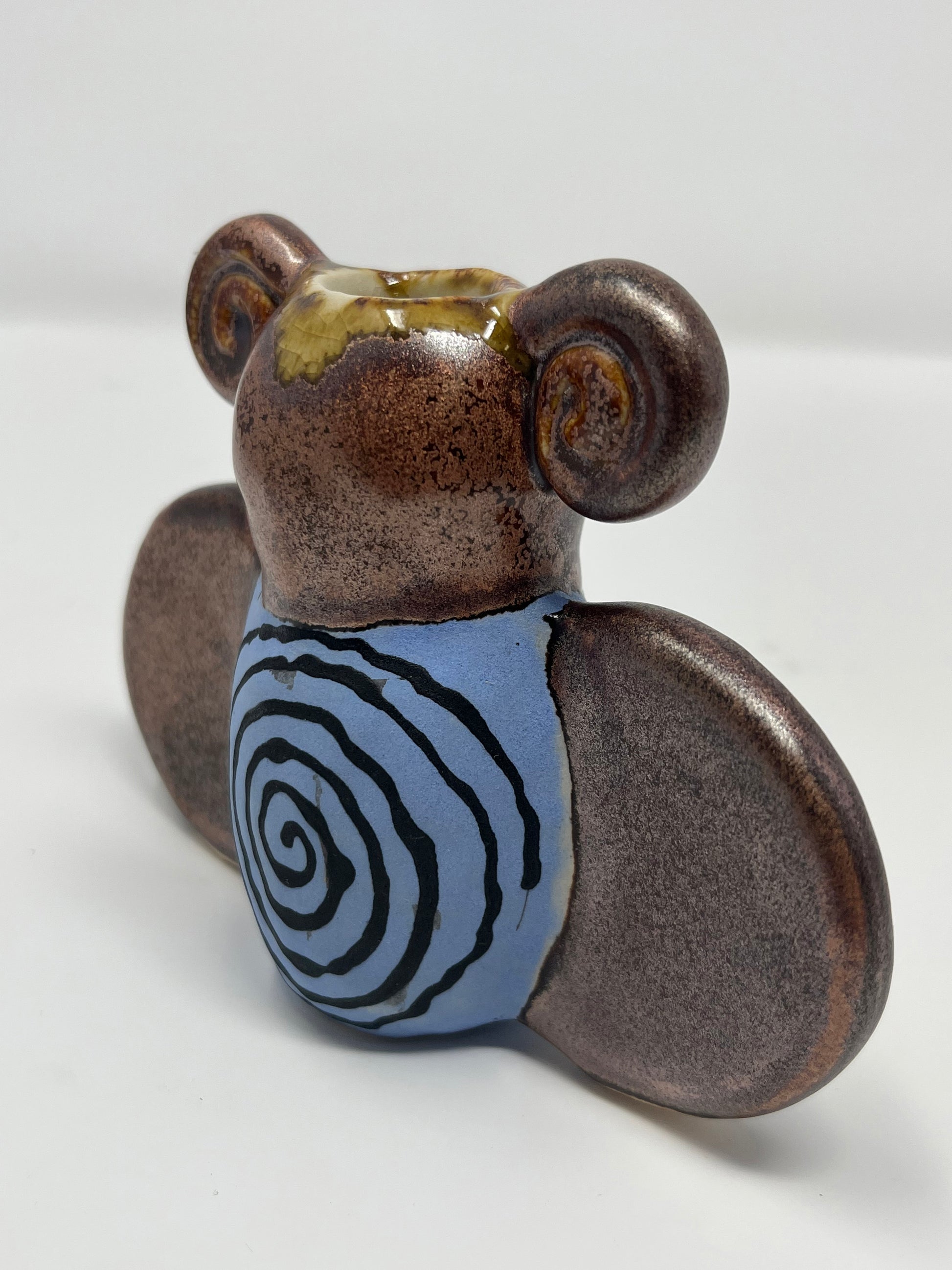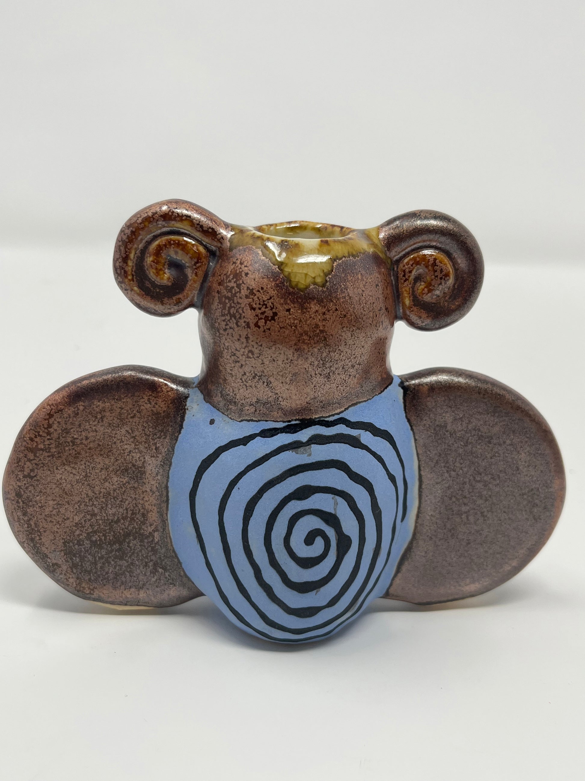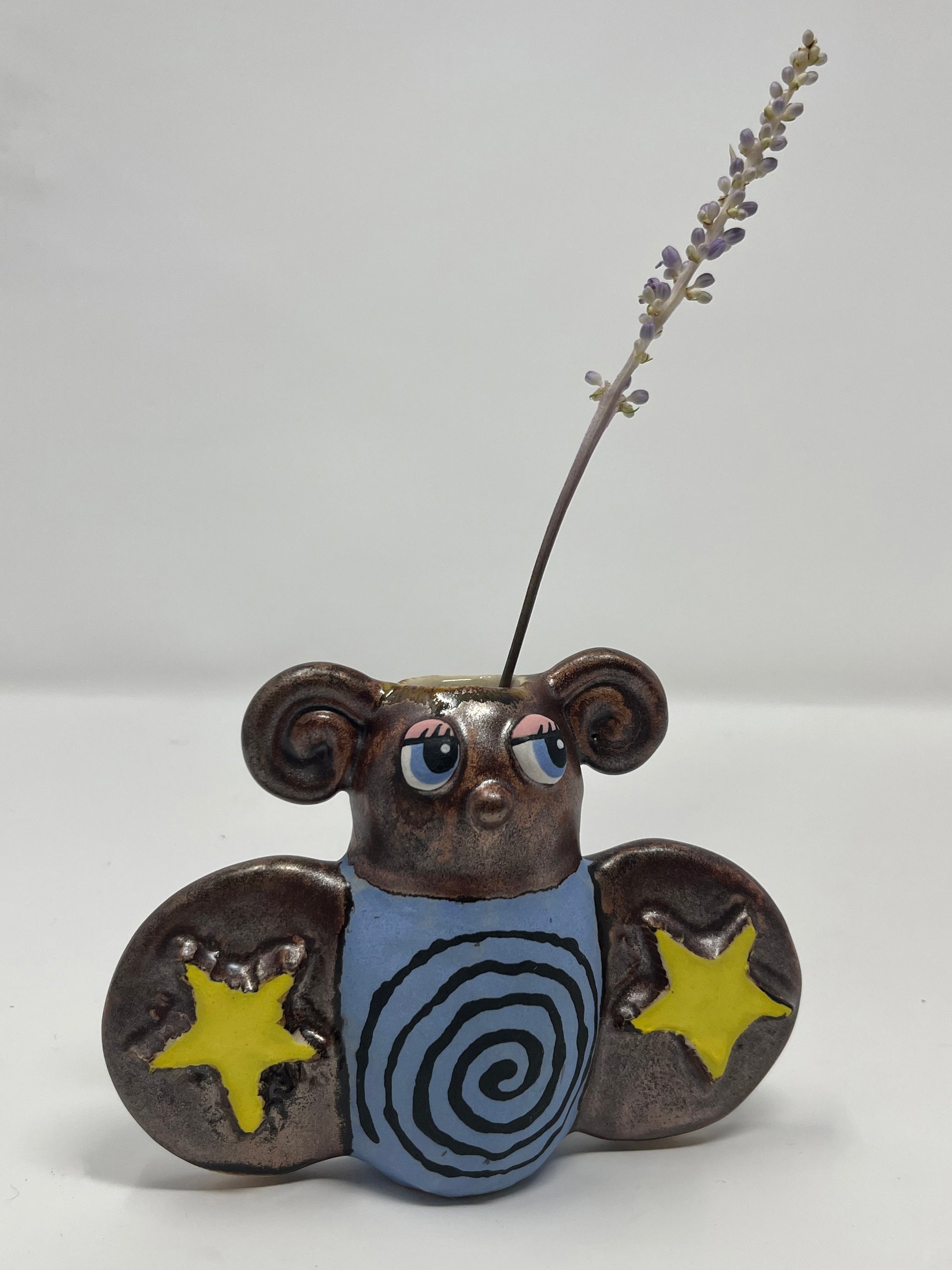 Hand built ceramic bud vase with hand painted design and metallic glaze. Food safe.
