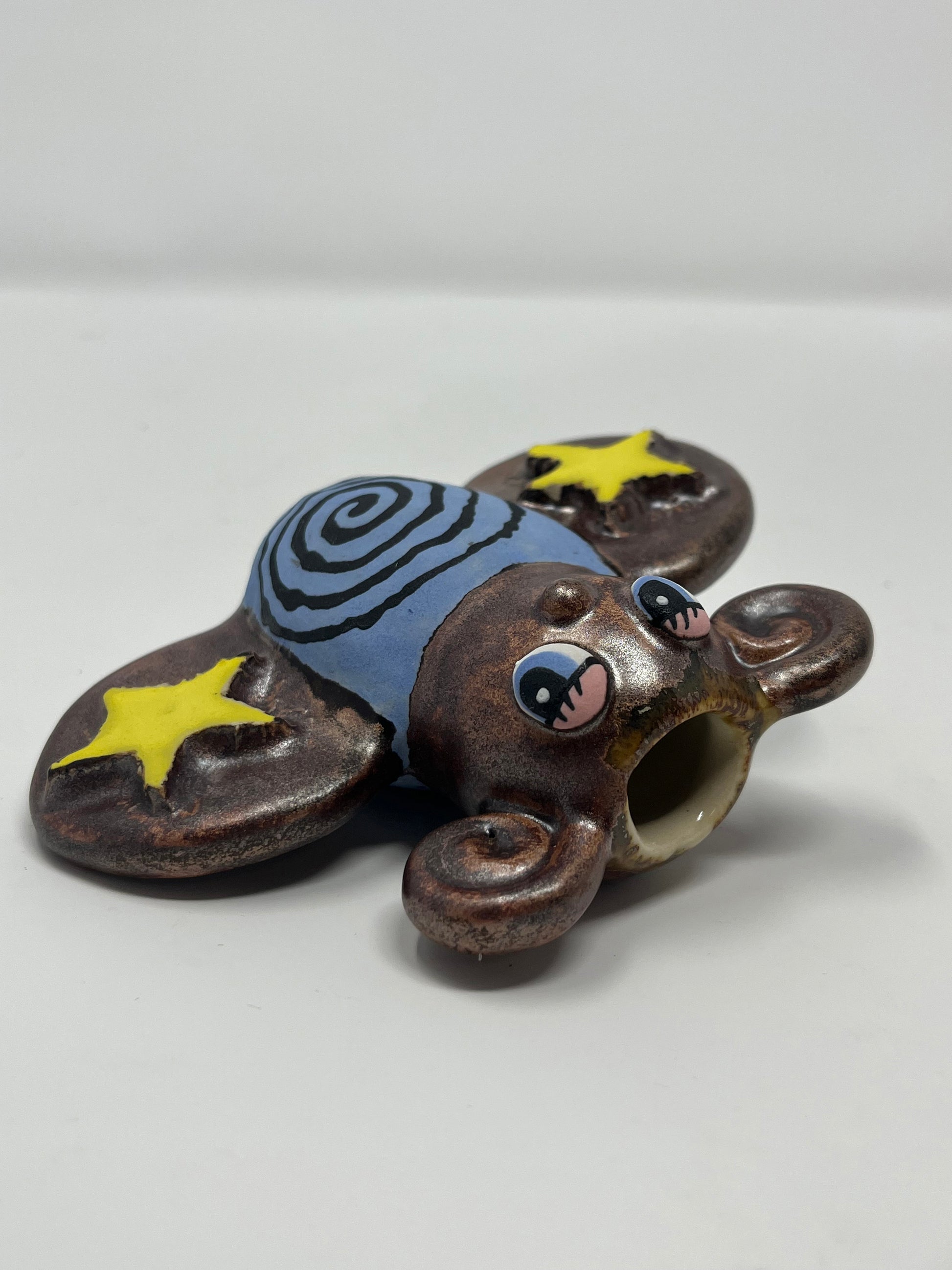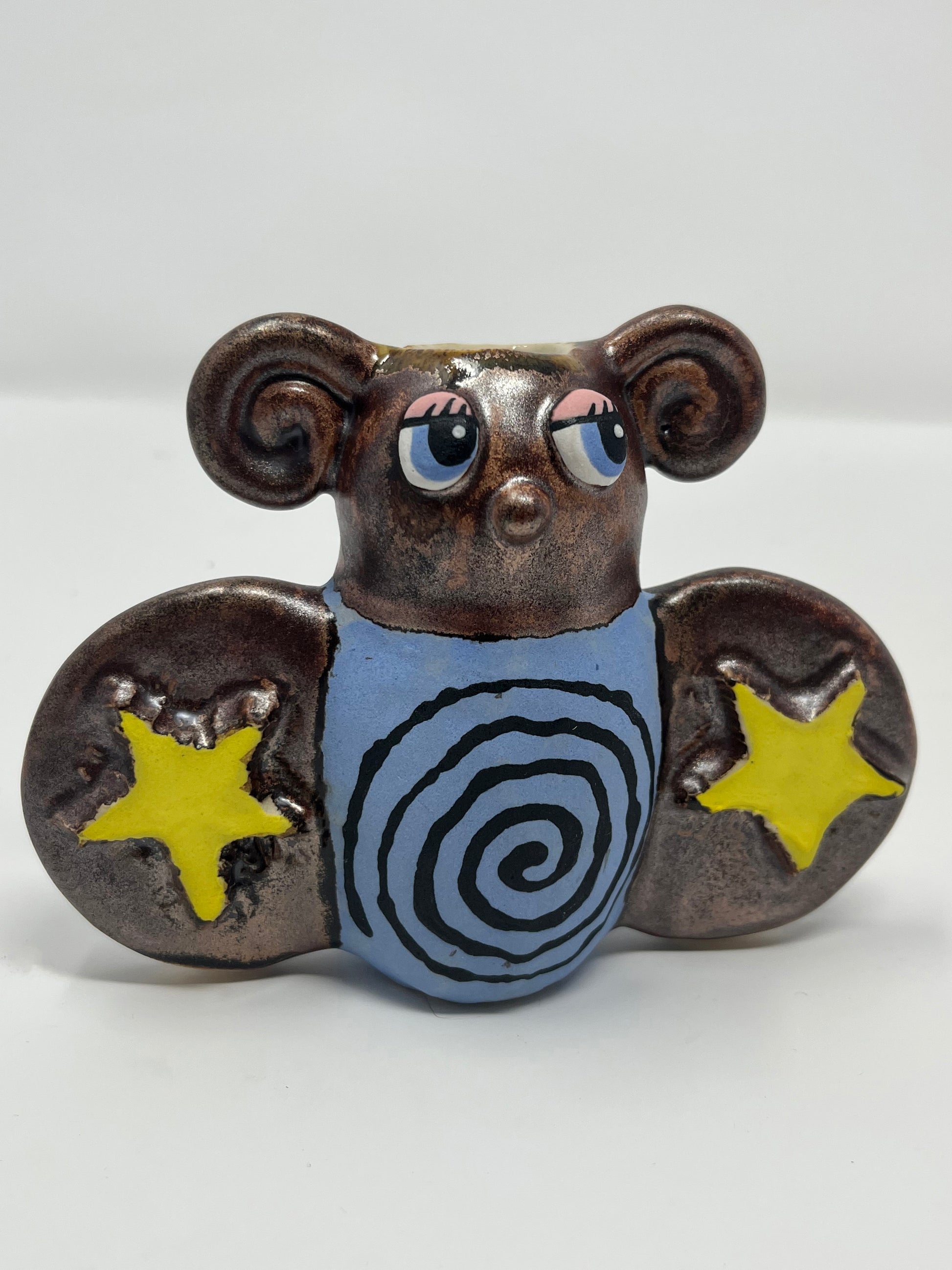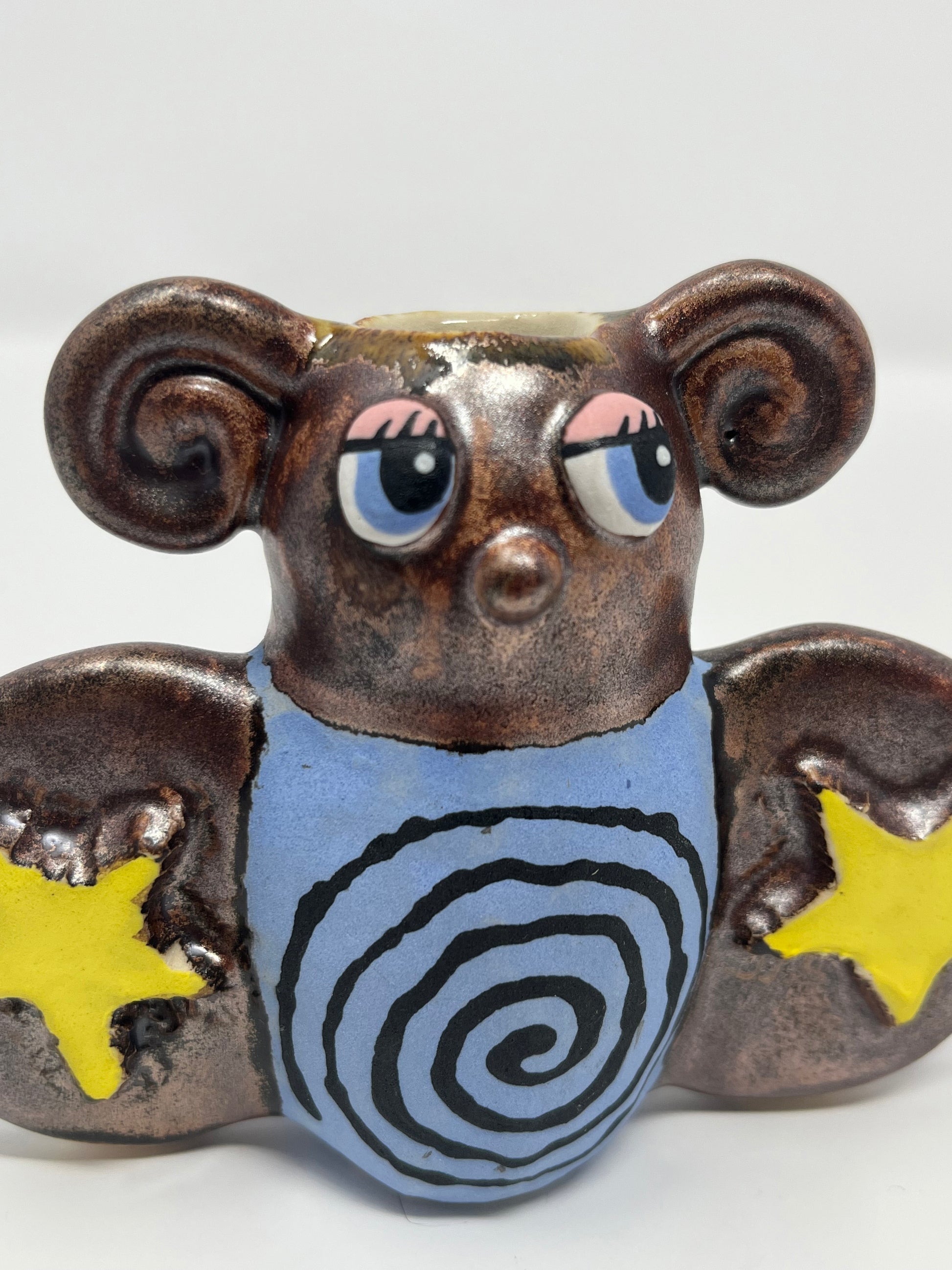 Hand built ceramic bud vase with hand painted design and metallic glaze. Food safe.