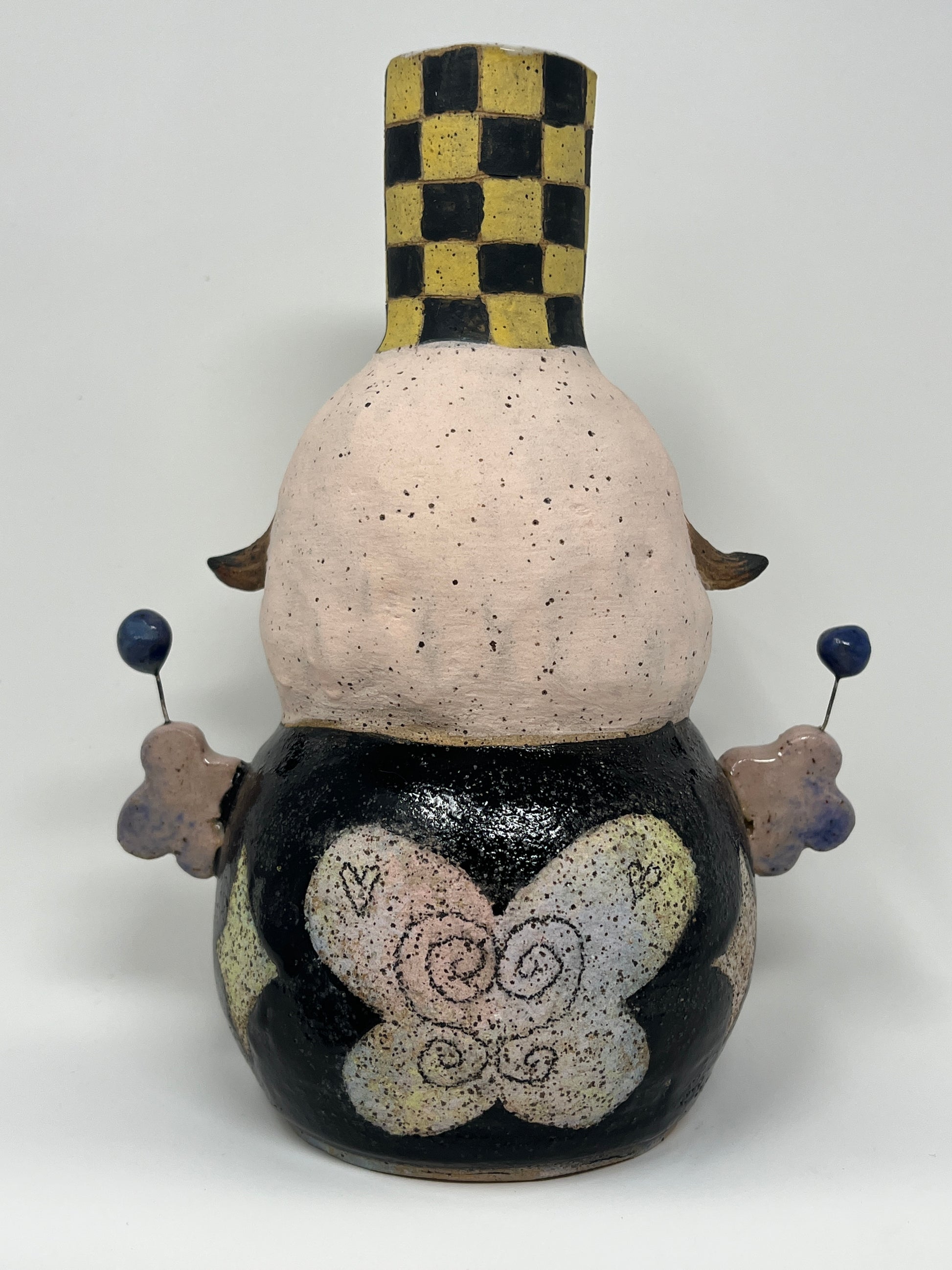 Hand built and wheel thrown ceramic baby vase with hand painted glaze design. Food safe.