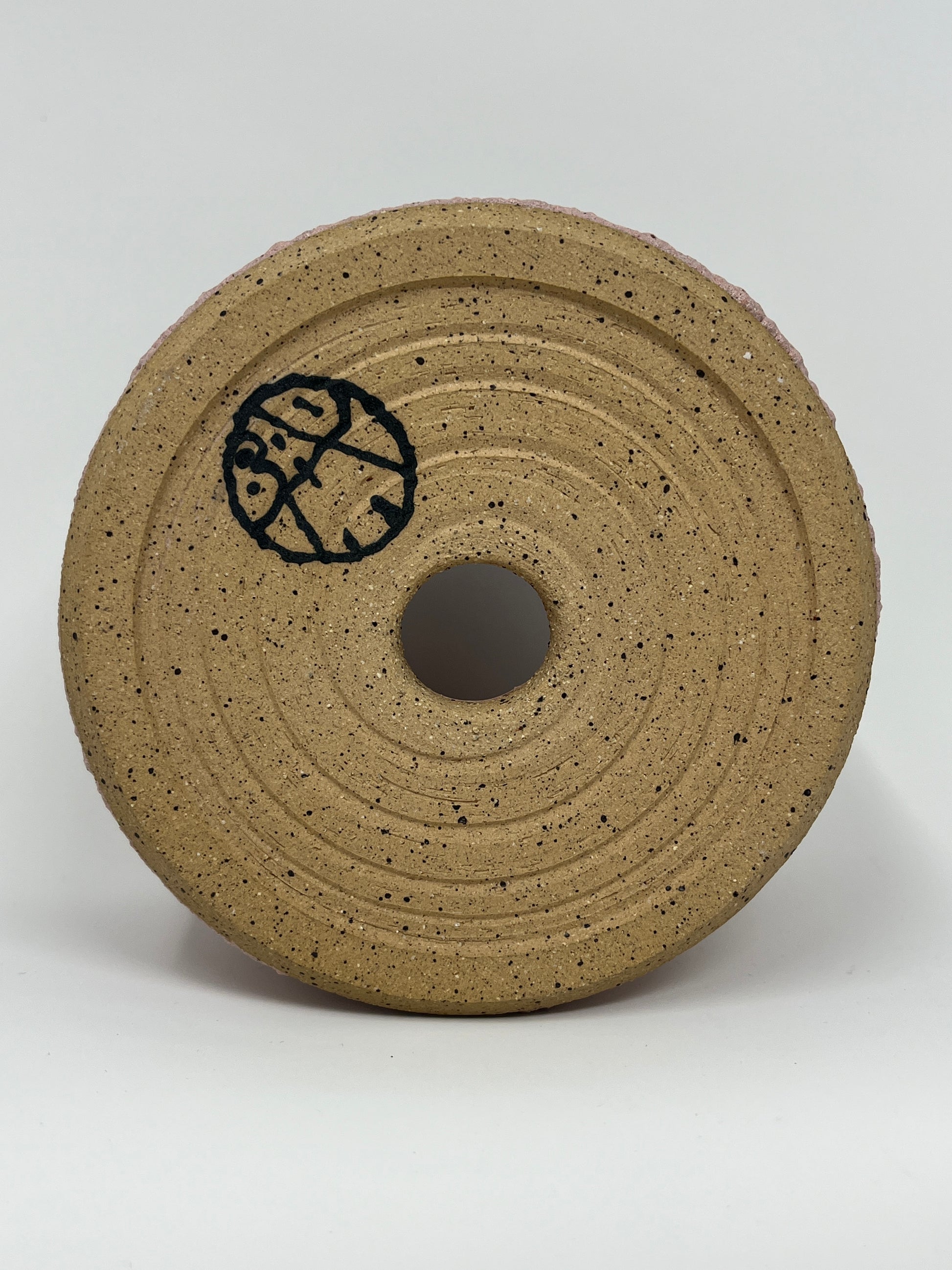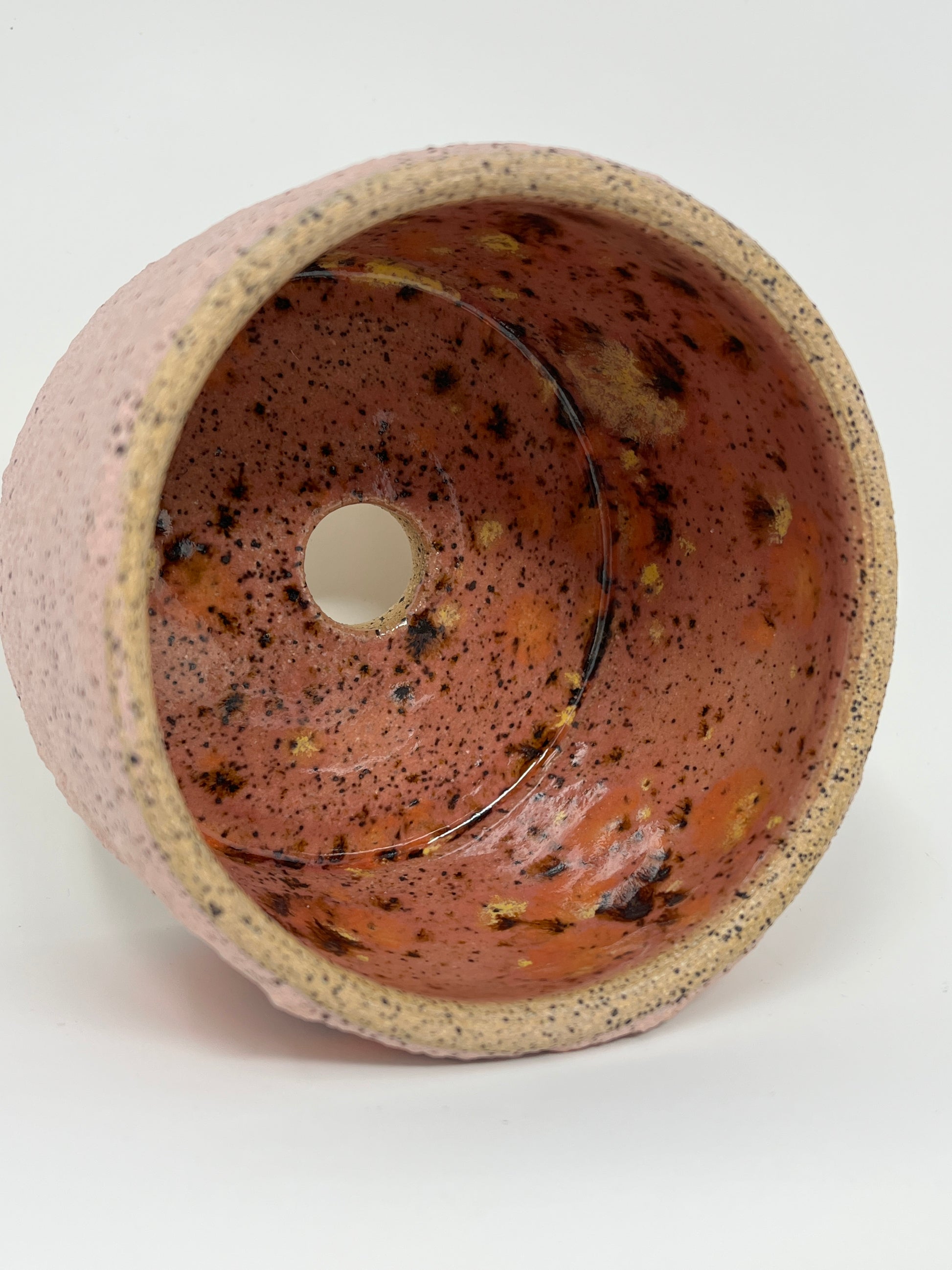 wheel thrown planter with hand painted glaze design. Puffy glaze is fragile and should be handled with care.