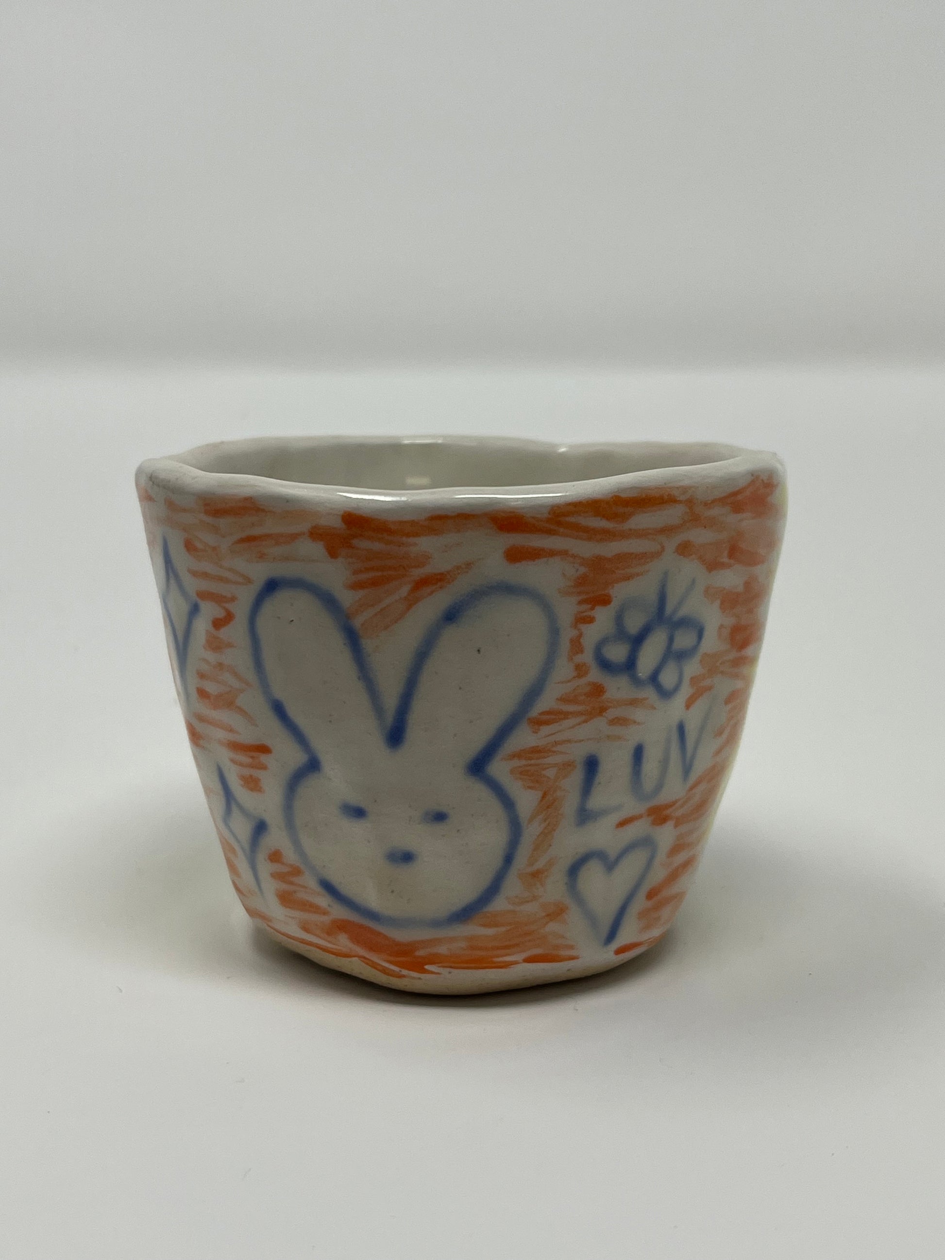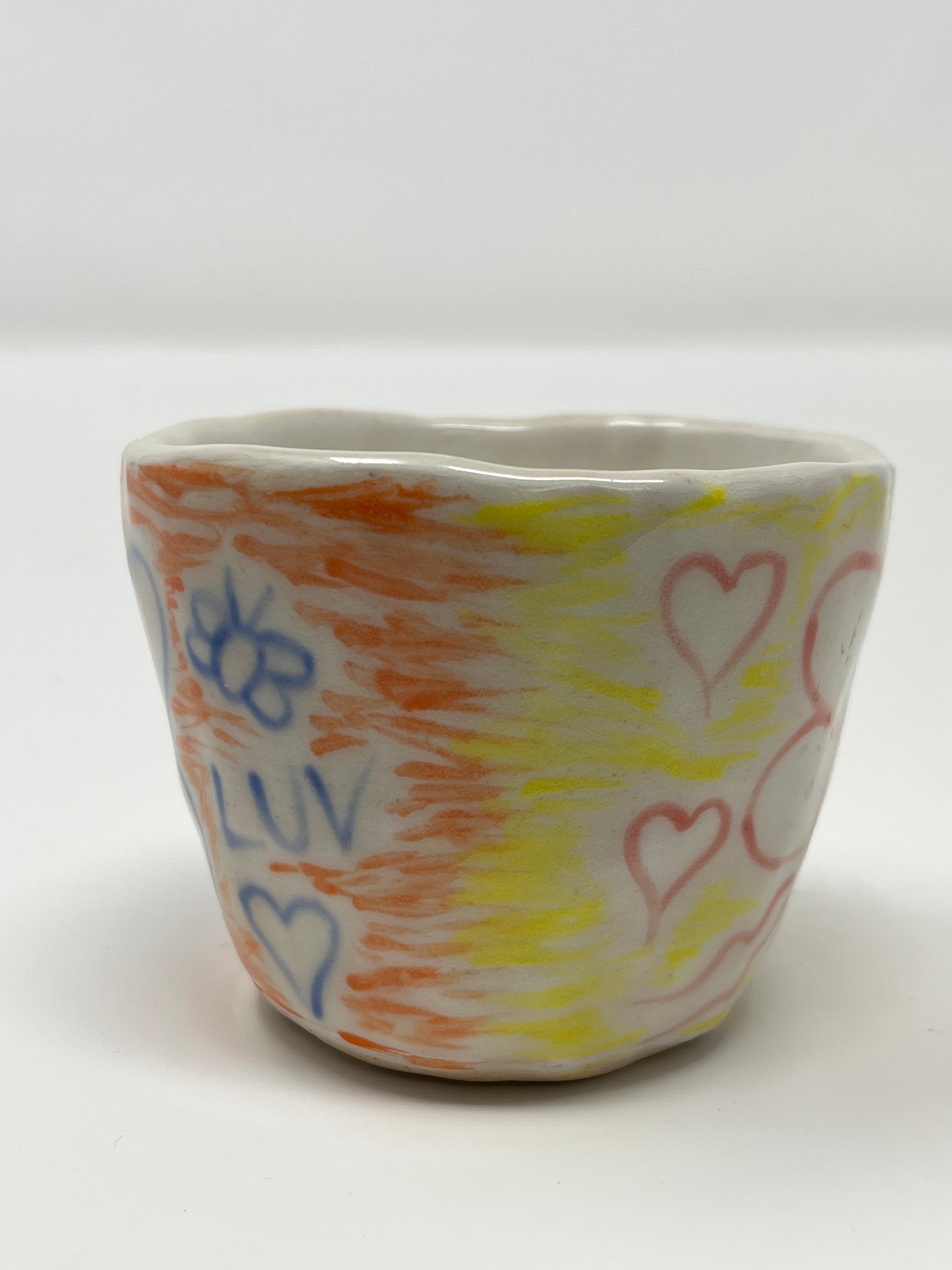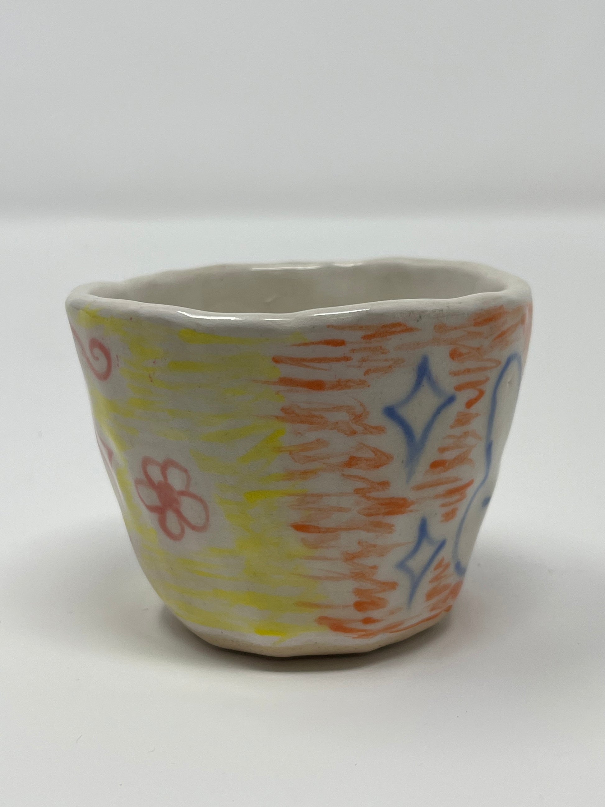 Hand built ceramic tea cup with hand painted glaze design. Food safe.