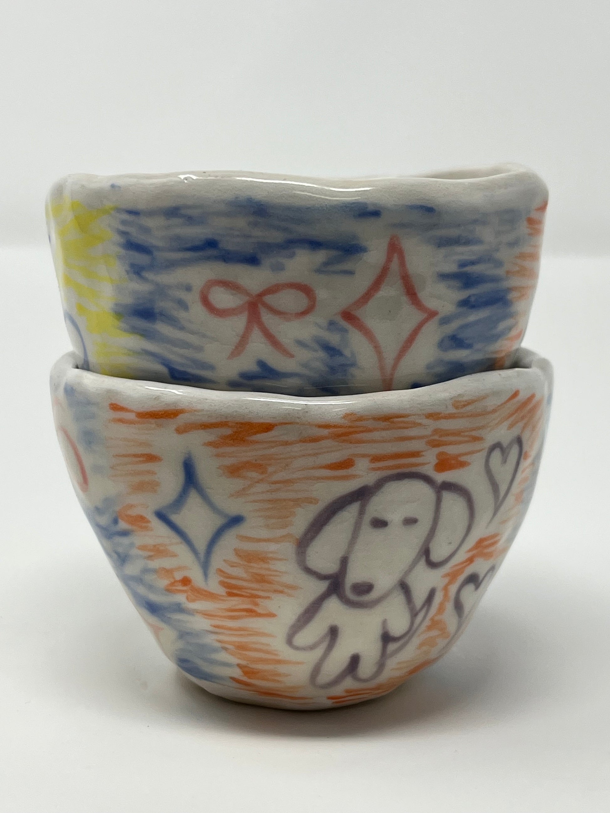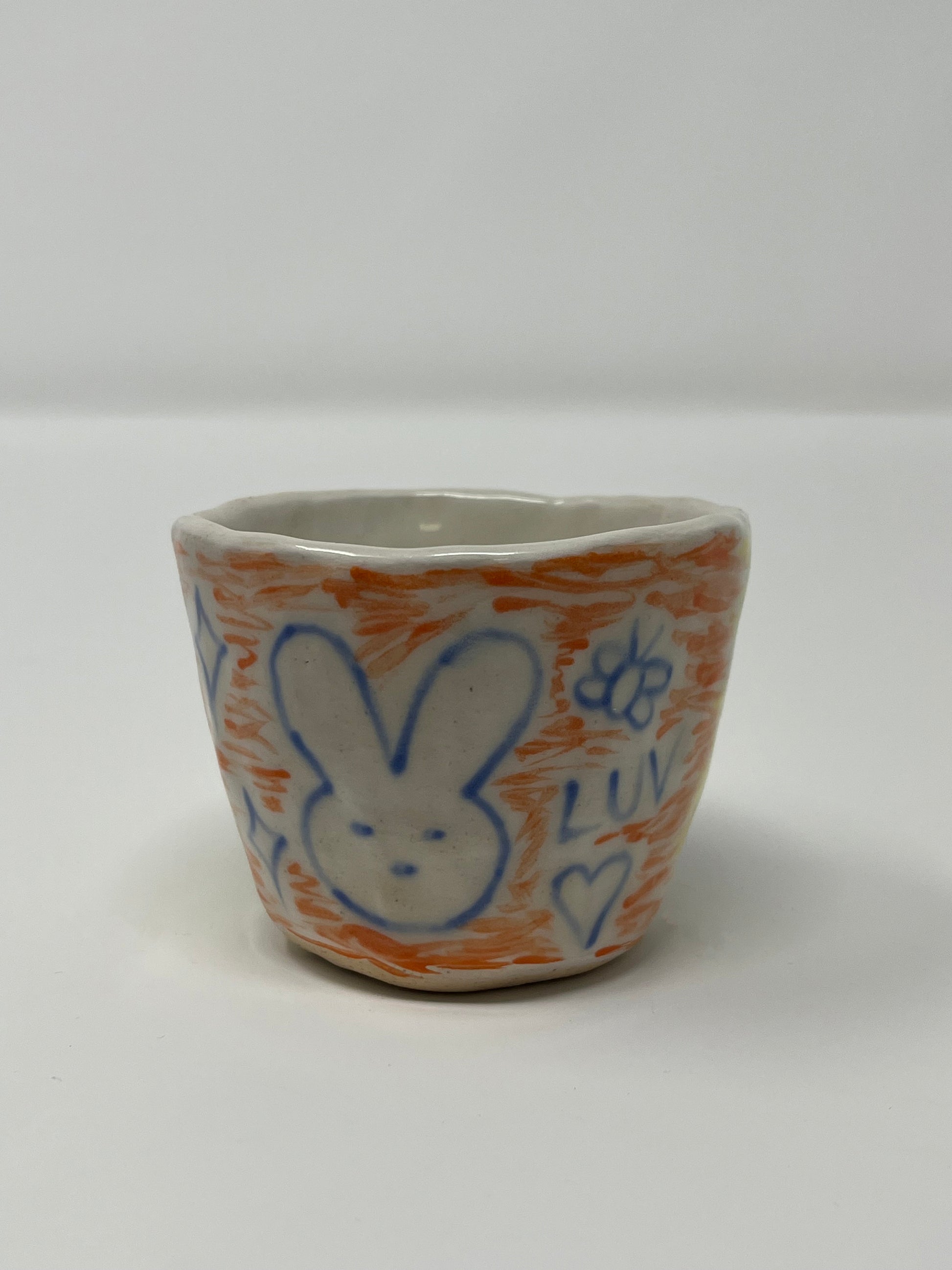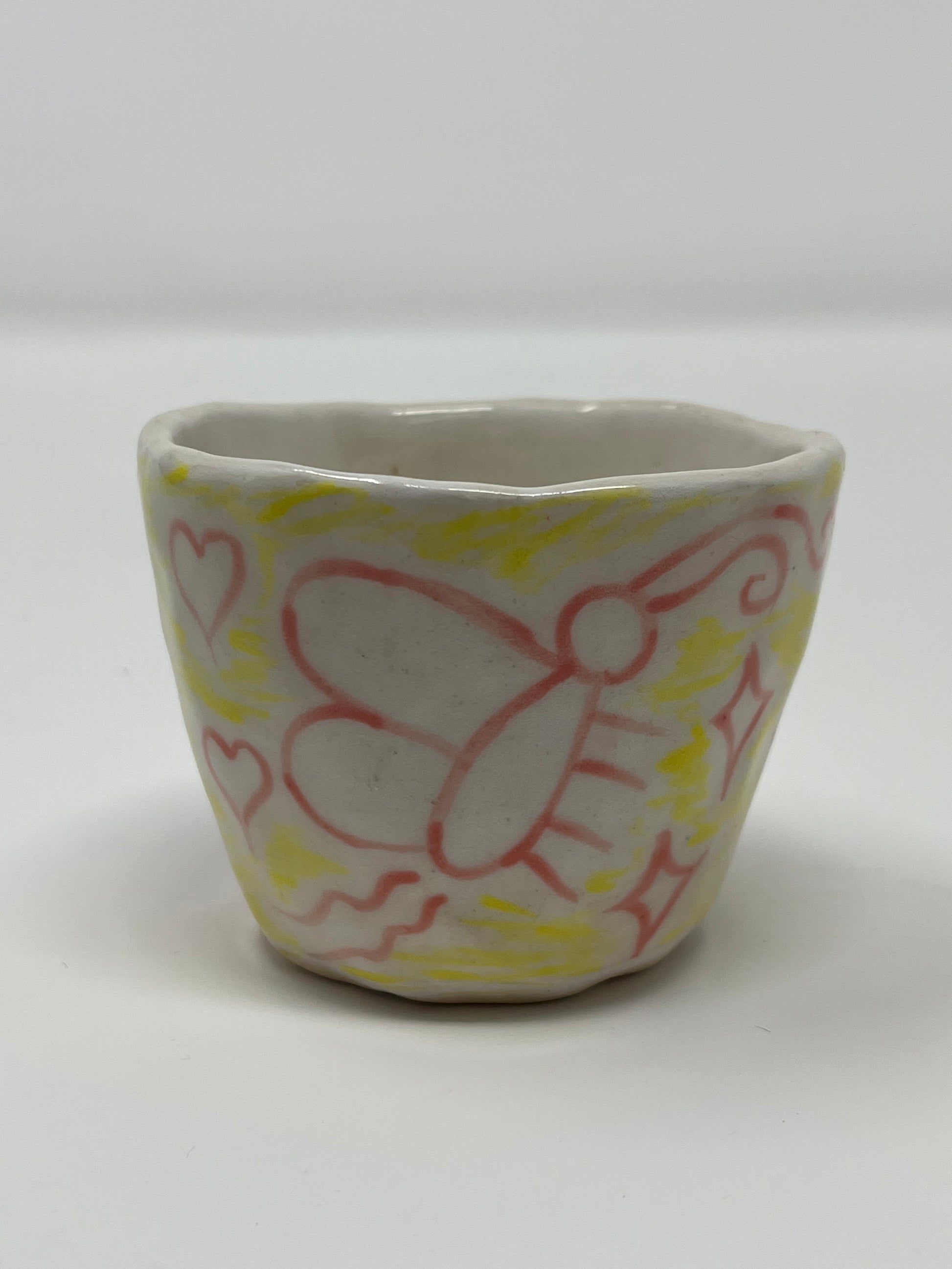 Hand built ceramic tea cup with hand painted glaze design. Food safe.