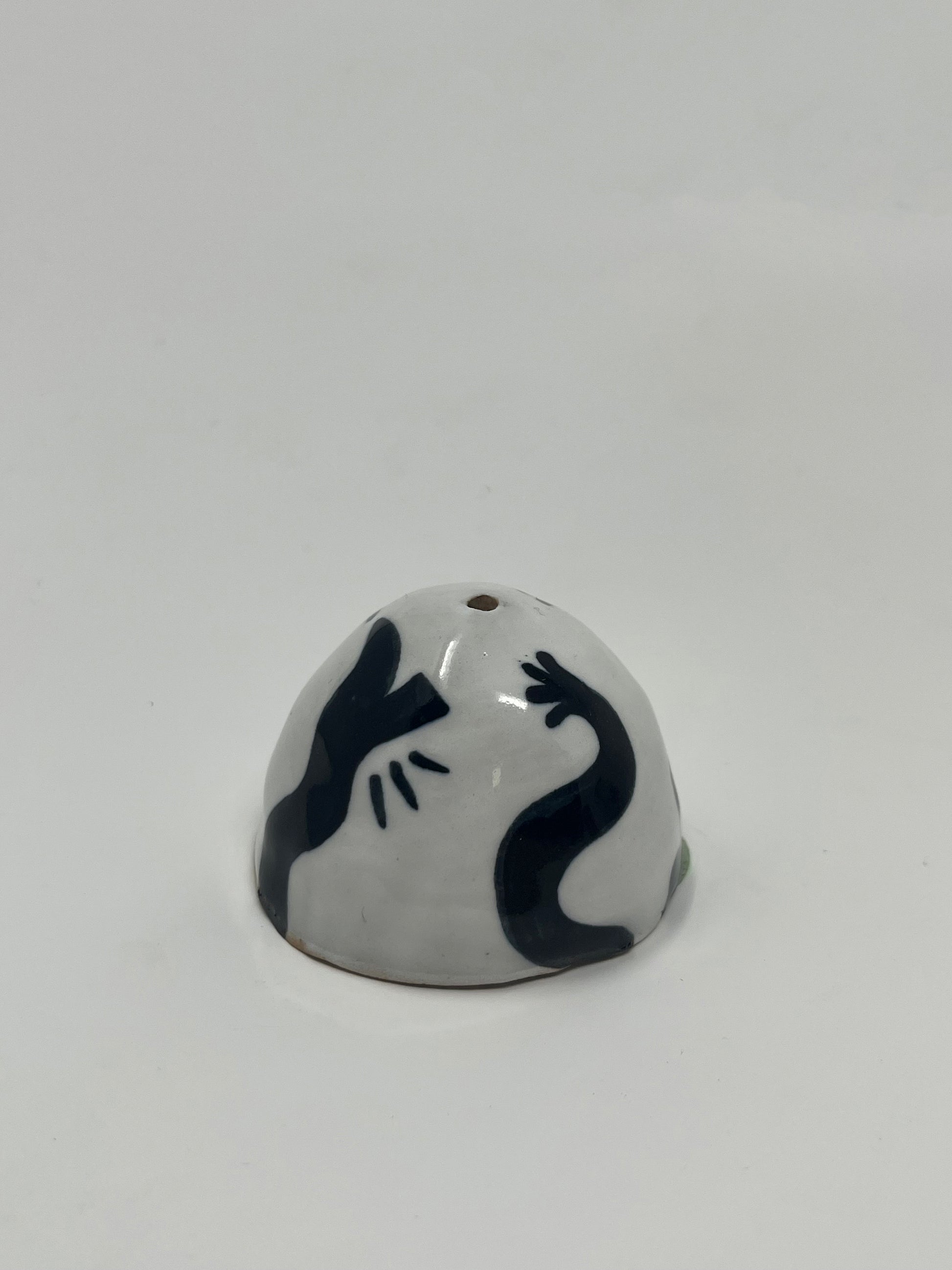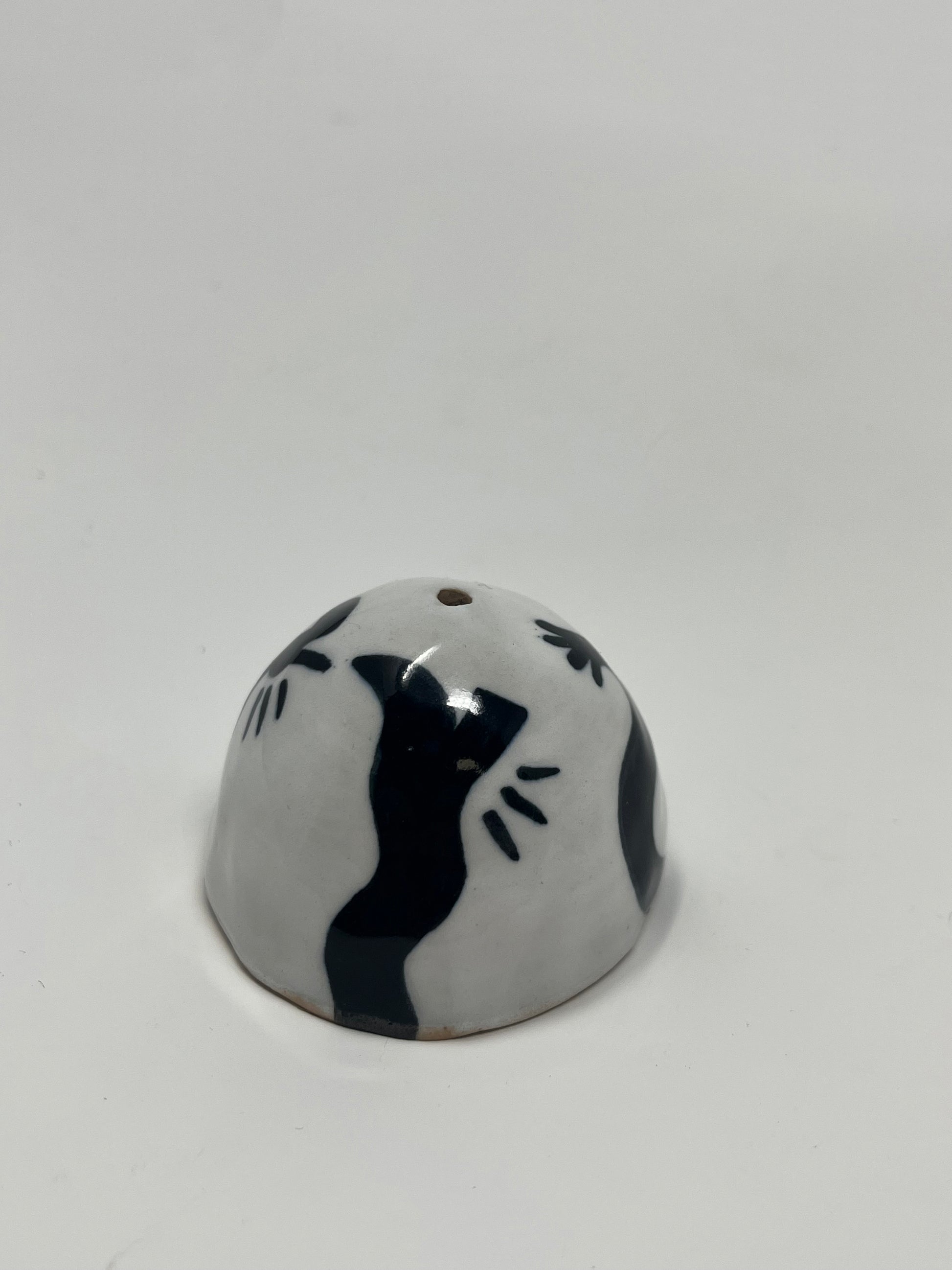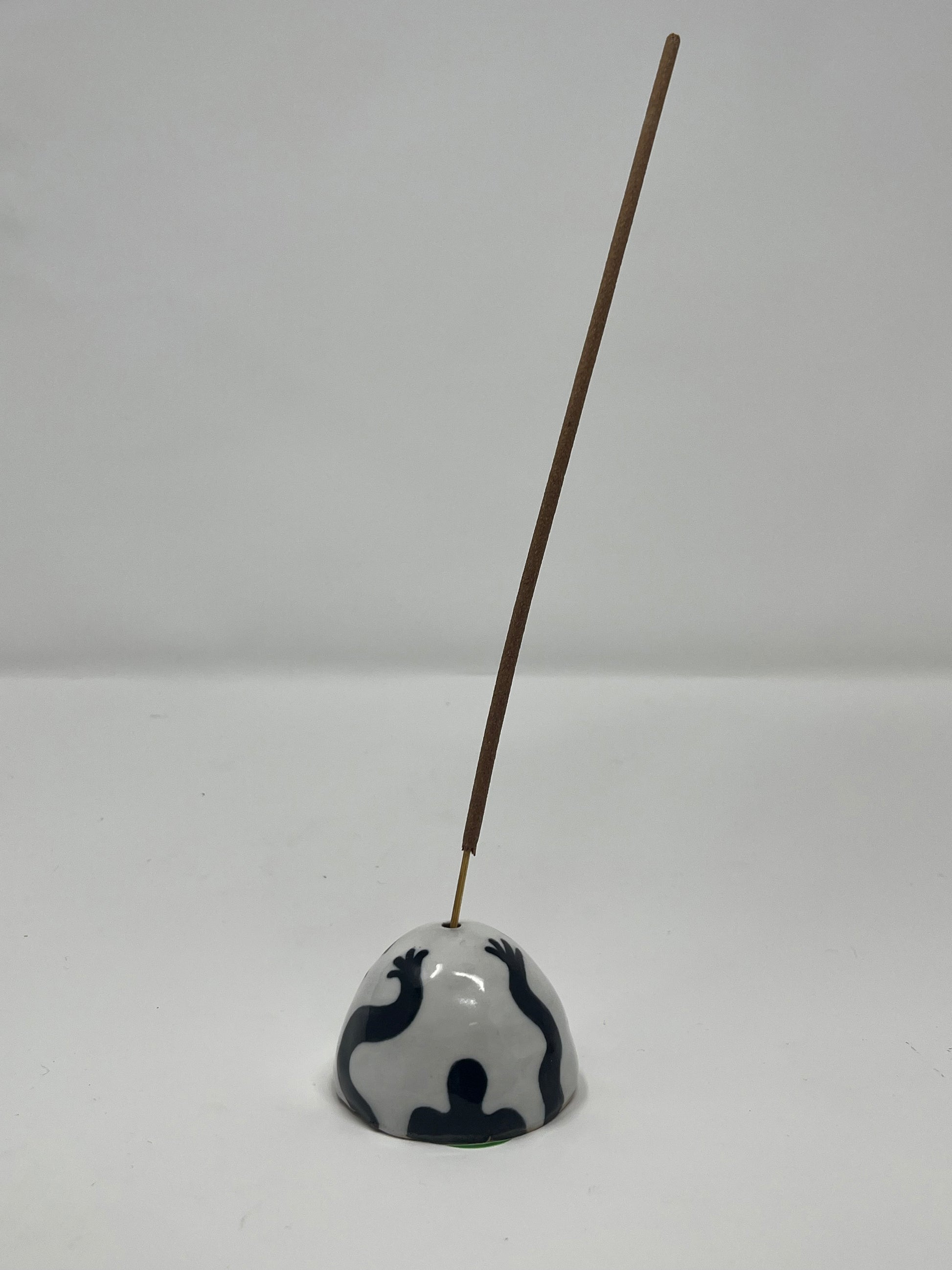 Hand built ceramic incense holder with hand painted glaze design. Food safe.